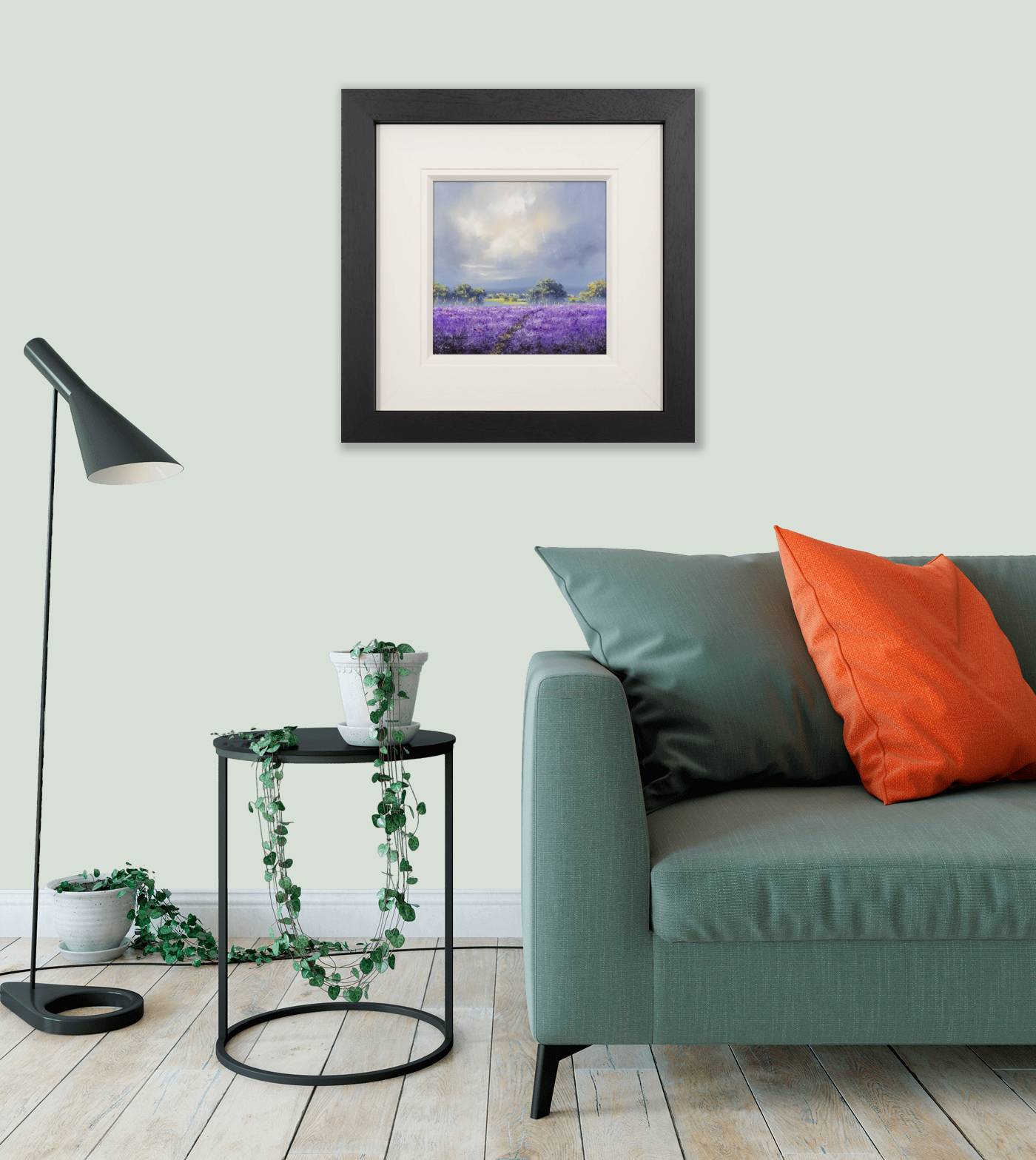 • 2. When prompted, press 'Visualise On Wall' and aim your phone at your floor while it calibrates*. A graphic will appear to help scale and position the artwork. You need to ensure this is correctly aligned to where the base of the wall meets the floor