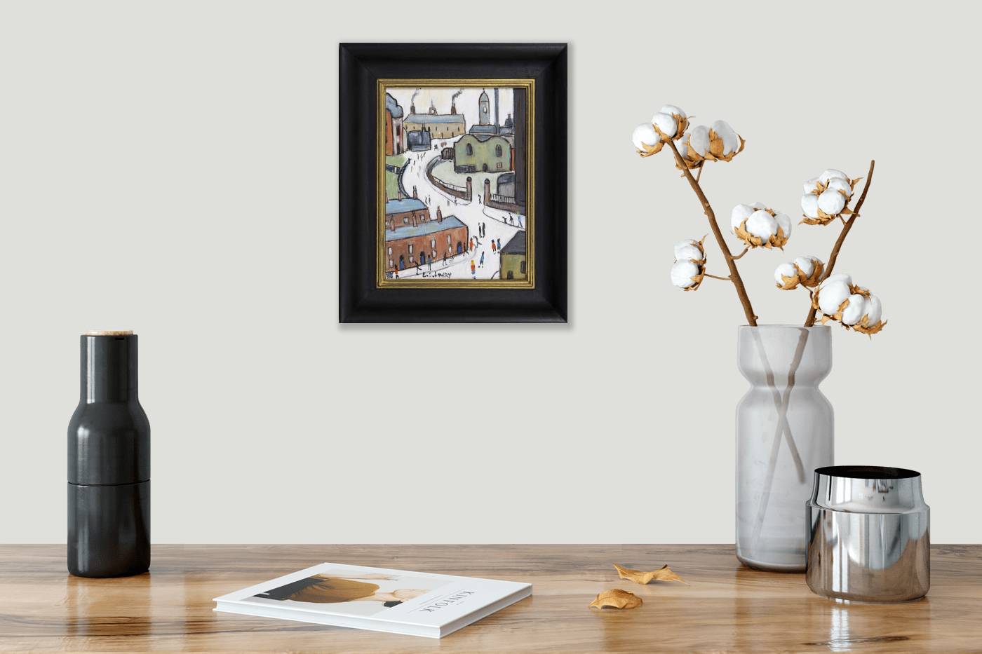 Original oil painting by David Henty in the style of L.S Lowry. Presented framed as shown and ready to display. Signed on the reverse ‘David Henty’.
