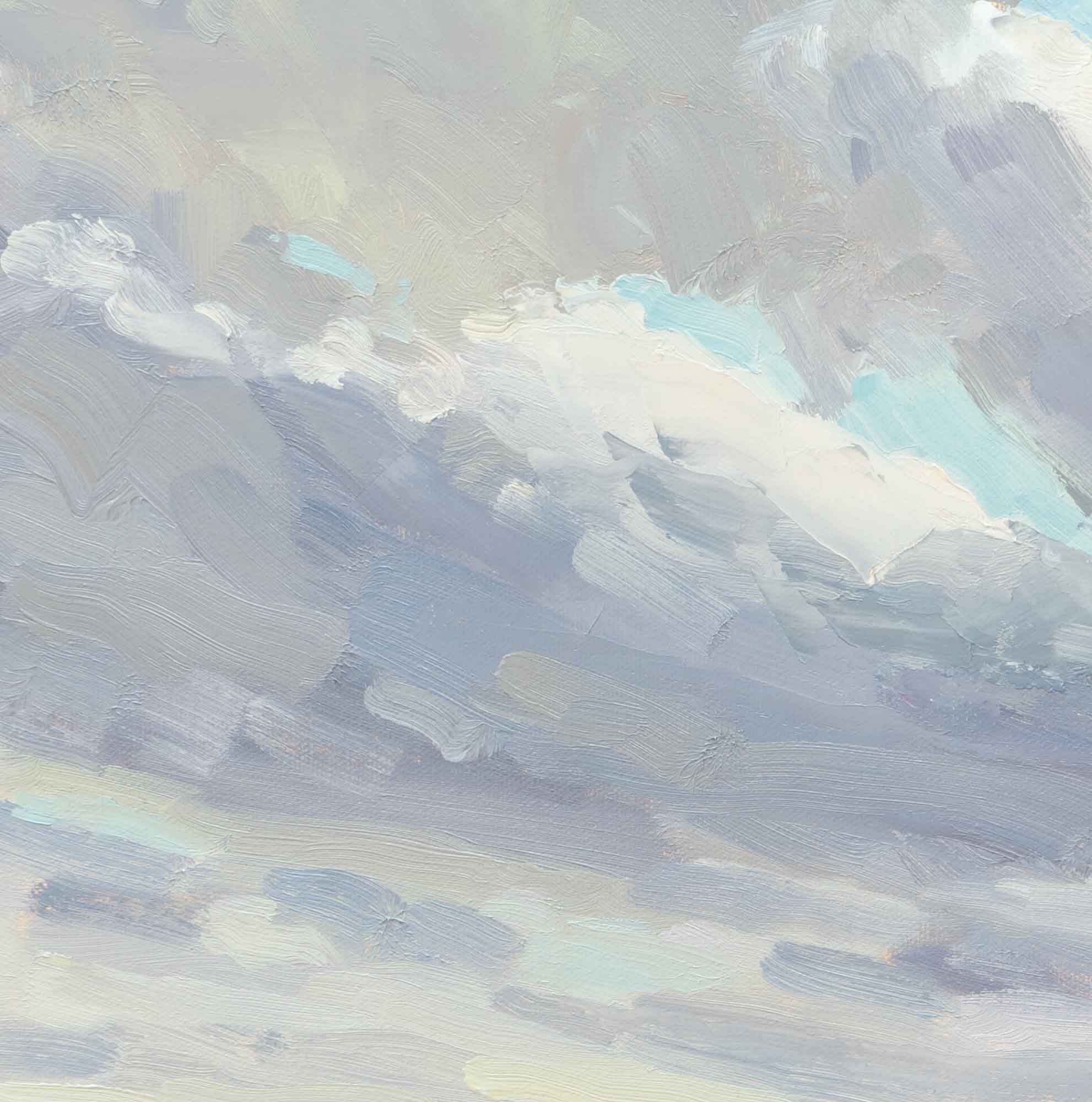 Preferring to paint en plein air, the artist enjoys the challenge of capturing a scene of changing nature under the wonderfully diverse weather conditions of Britain. “Immersing yourself in the environment and understanding the landscape and play of light is one of the most rewarding and important aspects of painting for me. We are blessed in Britain with such a diverse range of conditions created from the seasonal shifts and daily weather changes and putting myself in the field to experience these elements and changing light is so important. Whether creating small reference studies for development in the studio or completing a painting en plein air, every brush stroke carries intent and meaning and this is what gives a painting life.”